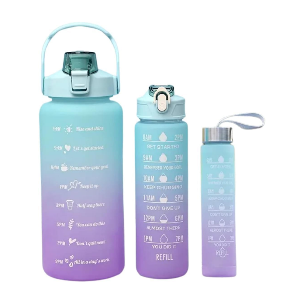 💧 Praticidade em Três Tamanhos: O kit inclui garrafas com capacidades de 300ML, 900ML e 2000ML, permitindo que você escolha o tamanho ideal para diferentes ocasiões. Seja para uma caminhada rápida ou para um dia inteiro fora de casa, você terá a garrafa perfeita.